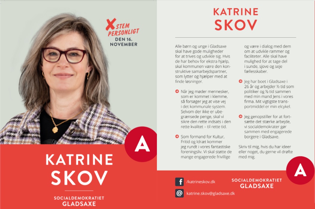 • Jeg genopstiller for at fortsætte det stærke arbejde, vi socialdemokrater gør sammen med engagerede borgere i Gladsaxe. Skriv til mig, hvis du har ideer eller noget, du gerne vil drøfte med mig.